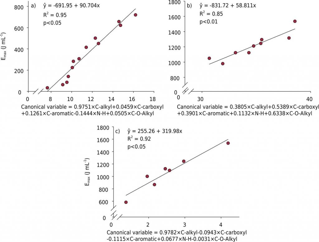 Aggregate stability is one of the most important factors in soil conservation and maintenance of soil environmental functions. The objective of this study was to investigate the aggregate stability mechanisms related to chemical composition of organic matter in soil profiles with humic and histic horizons in a toposequence under Araucaria moist forest in southern Brazil. The soils sampled were classified as Humic Hapludox (highest position), Fluvaquentic Humaquepts (lowest slope position), and Typic Haplosaprists (floodplain). The C and N contents were determined in bulk soil samples. The chemical composition of soil organic matter was evaluated by infrared spectroscopy. Aggregate stability was determined by applying increasing levels of ultrasound energy. Carbon content increased from the top of the slope to the alluvial plain. Higher ultrasonic energy values for clay dispersion were observed in the C-rich soils in the lower landscape positions, indicating that organic compounds play an important role in the structural stabilization of these profiles. Both aliphatic and carbohydrate-like structures were pertinent to aggregate stability. In the Oxisol, organo-mineral interaction between carbohydrates and the clay mineral surface was the most important mechanism affecting aggregation. In soils with a higher C content (Humaquepts and Haplosaprists), stabilization is predominantly conferred by the aliphatic groups, which is probably due to the structural protection offered by these hydrophobic organic groups.
