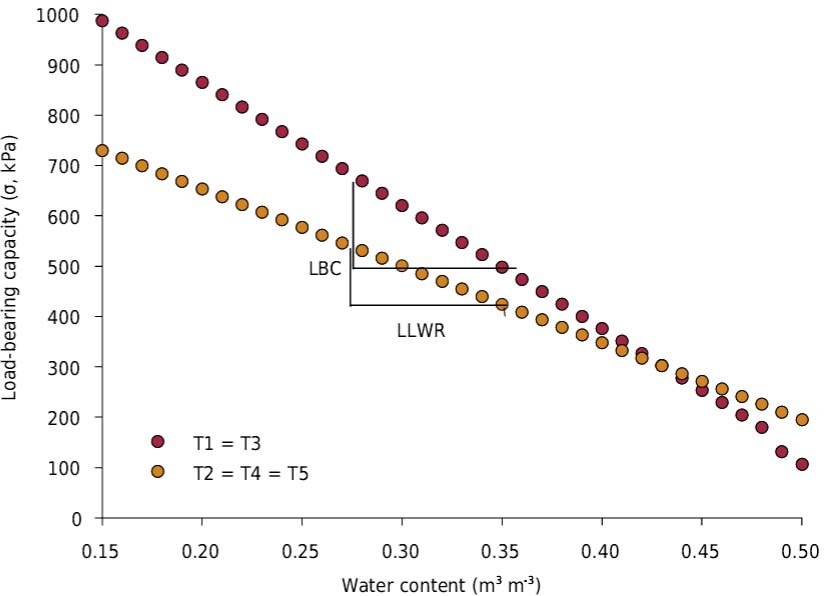 Mechanical harvesting has increasingly been used in sugarcane production units, and it has often resulted in reduced structural quality of the soil due to soil compaction caused by machine traffic. Thus, sugarcane ratoon crops have often been chiseled to overcome such a problem. The aim of the current study is to assess some physical properties of a Latossolo Vermelho Distroférrico (Rhodic Hapludox) that was chiseled after the third harvest in a sugarcane ratoon crop. The study was conducted in a commercial crop area throughout the 2011/2012 crop year. A randomized block experimental design was used, with five replications. The treatments consisted of five chiseling operations in sugarcane ratoon crops, namely: T1 – single-shank ripper with chiseling to a depth of 0.15 m; T2 – single-shank ripper with chiseling to a depth of 0.30 m; T3 – two-bar ripper with chiseling to a depth of 0.15 m, T4 – two-bar ripper with chiseling to a depth of 0.30 m; and T5 – control group, with no chiseling. Overall, soil chiseling is effective for improving the physical quality of the soil to a depth of 0.15 m, regardless of the equipment and the depth. Two-bar-ripper-based soil chiseling to a depth of 0.30 m provides increased sugarcane yield.
