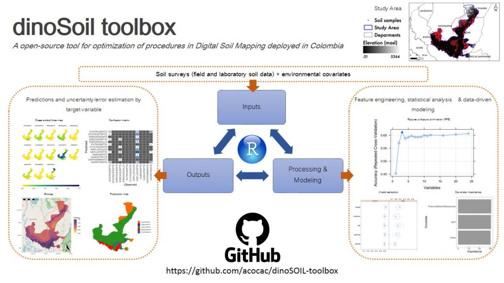 We propose a toolbox facilitating the workflow of a digital soil mapping project.