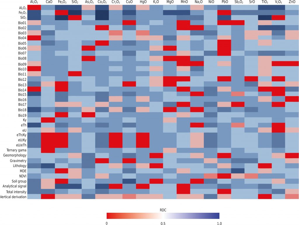 The great geological and soil variation in the state of Minas Gerais, Brazil, indicates the need for regional studies to understand the geochemical background of soils. The Rio Doce Basin became a priority area for geochemical background determination after the rupture of the tailings dam of Fundão in 2015. In this context, the objectives of this study were to propose Reference Values of Soil Quality in the Rio Doce Basin, to define variables that can predict metal(loid) concentrations in the soil, and to examine the correlation between metal(loid) concentrations determined by X-ray fluorescence and by the traditional method. One hundred and seven samples were collected from minimally disturbed areas, representing the main soils and source materials. Metal(loid)s were determined by acid digestion and X-ray fluorescence. Descriptive statistics of the data, as well as the calculation of the Randomized Dependence Coefficient (RDC) and Principal Component Analysis (PCA) were carried out. The soils were found to be acidic, dystrophic with low Mehlich-1 extracted P contents, and have a variable texture. The coefficient of determination ranged from 0.4 to 0.9, suggesting X-ray fluorescence as a promising technique for determining metal(loid) concentrations in soils. The absence of correlation between clay and organic matter contents with metal(loid) concentrations suggests that the latter were inherited exclusively from the parent material, with little influence of pedogenesis. Metal mineralization in the highlands that constitute the topographic drainage divide of the basin increase the reference values of soil quality to higher values than established for the State of Minas Gerais.