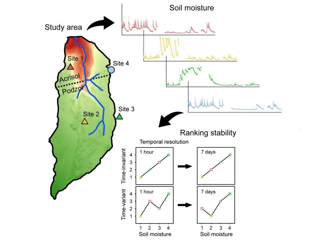 Soil characteristics set apart up/downstream soil moisture in small-scale watershed